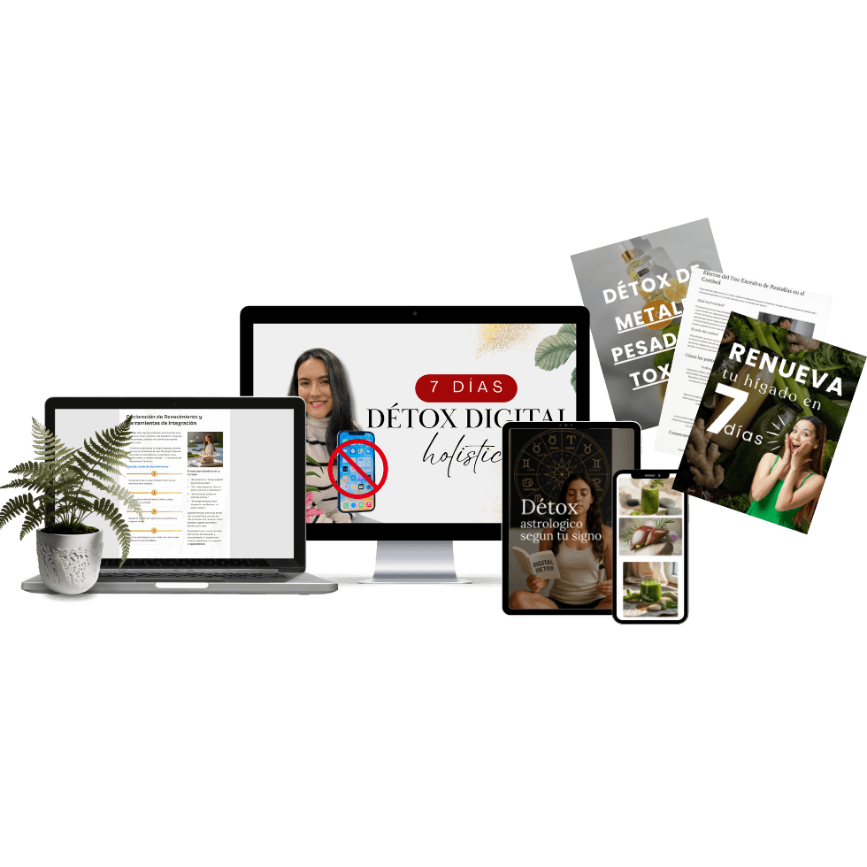 Incluye 4 guías hermosas de détox: digital, hepático, de metales y según tu signo